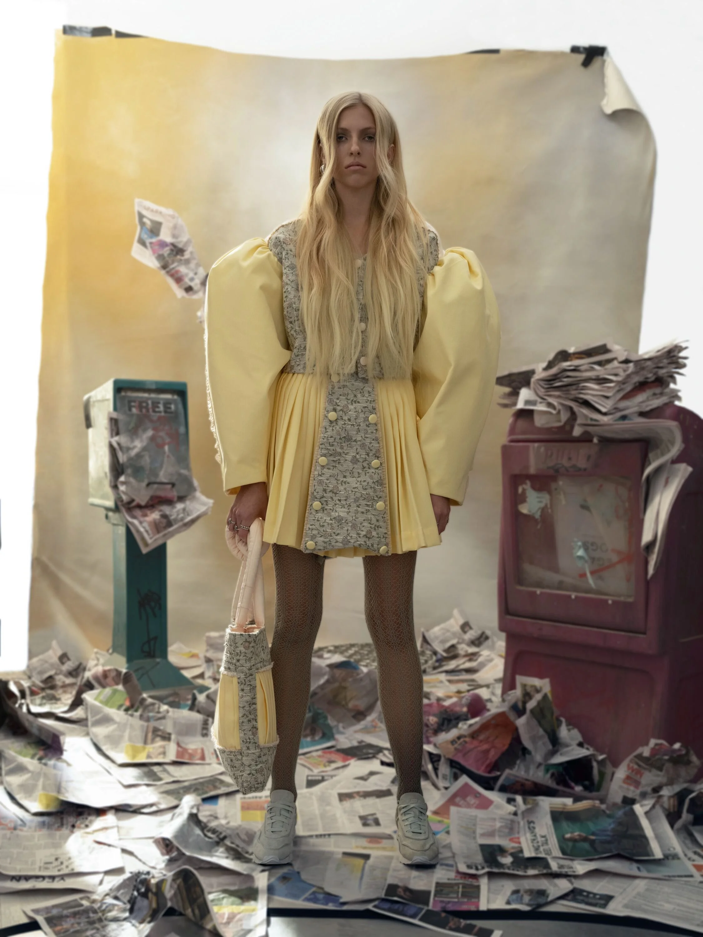 Eager to push boundaries and explore new ideas, Dorian broke away from tradition. Undertaking new challenges revolving around a genderless and sustainable fashion. A street wear inspired collection featuring playful shades of pastel yellow, green, pink, and a touch of ochire. Pleats were a crucial part of this collection, and they were incorporated into most pieces. For this collection, Dorian celebrated slow fashion by upcycling fabrics and repurposing scraps to make astonishing accessories and handbags.Launched in 2019